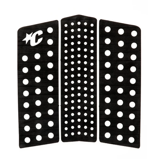 The Front Deck III traction pad is a 3-piece front deck pad that with extreme cut outs for added traction and Flat Cord traction pattern for that waxed on feel. The tonal Black and White colour-ways are perfect for matching back to any coloured or none colour traction pad. Also featuring 3M Adhesive backing and the exclusive lightweight premium EVA formula.
