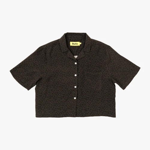 DUVIN BLACK LEOPARD CROP BUTTONUP (DWSSB103BLK)