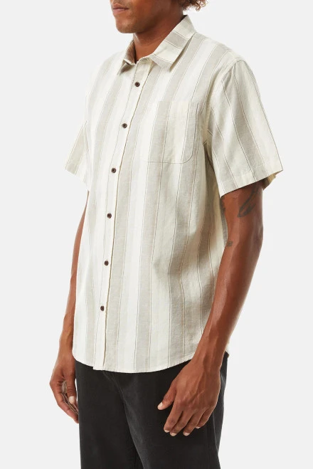The Kenwood Shirt features a custom vintage-inspired striped allover pattern atop a breathable cotton/linen button-up woven shirt.