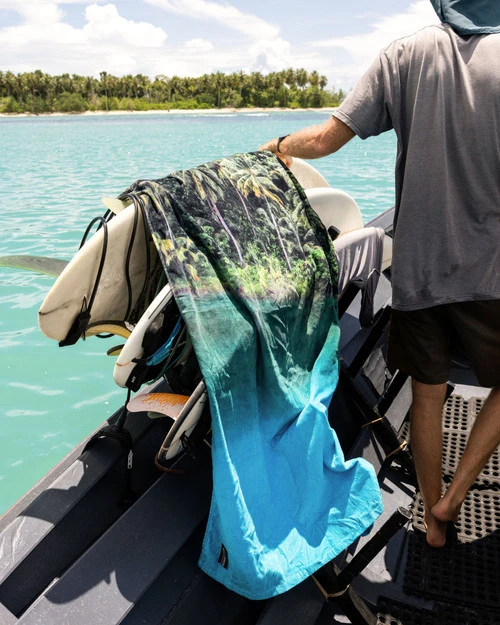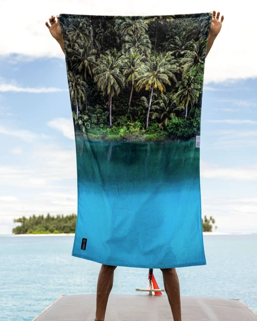 The John Barton Jungle Beach ECO towel transports you to an Indonesian dreamland. “Johnny Jungle” found a magical place in the Mentawai Islands and captured an image that is transcendent, wild, and truly breathtaking. Lying on this towel is like taking a trip to Indo…see you there.